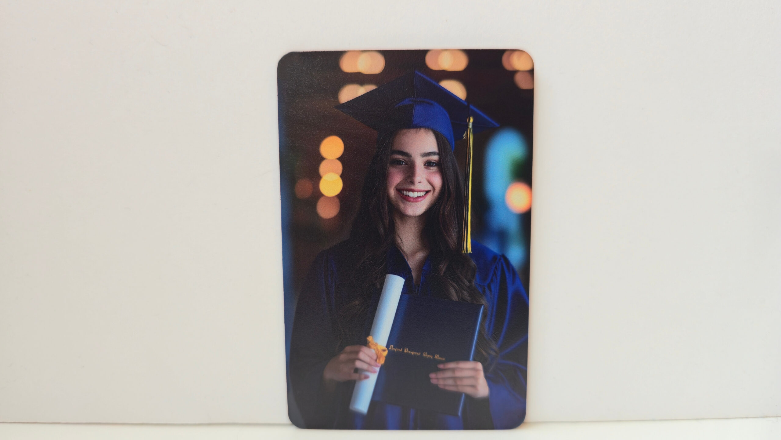 Celebrate your grad with a one-of-a-kind custom metal magnet, UV printed in full color and built to last. Printed directly onto a premium metal blank with vibrant, fade-resistant UV ink that pops. Strong magnet backing sticks to fridges, lockers, and filing cabinets.